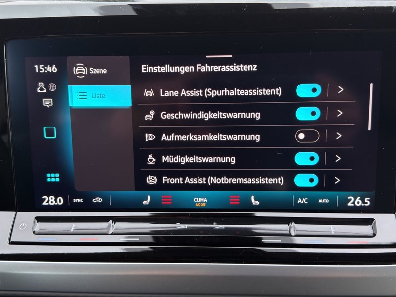 - Fahrassistenz-System: Spurwechselassistent (Side Assist) mit Auspark-Assistent und Ausstiegswarnung