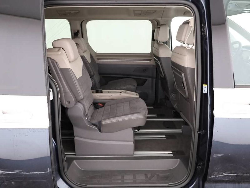 - Flexibler 7-Sitzer Innenraum mit hochwertigen ArtVelours/Kunstleder-Bezügen, individuell verstellbaren Sitzen und praktischen Klapptischen – ideal für Familien und Gruppen.